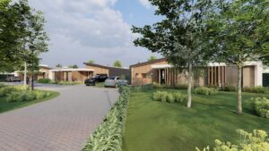 Van der Meijden Vastgoed ontwikkeld op de voormalige locatie van het kerkgebouw van de Vrij Evangelische Gemeente aan de Margrietlaan drie luxe levensloopbestendige villa's.