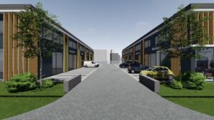 Van der Meijden Vastgoed is in Dieren bezig met de bouw van 20 bedrijfsruimtes. De ruimtes zijn verdeeld over drie verschillende bedrijfsverzamelgebouwen op hetzelfde terrein. Naast de bedrijfsruimtes met een enkele vloer worden er ook 16 bedrijfsruimtes met verdiepingsvloer gerealiseerd.