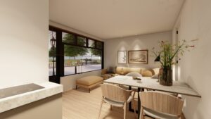 De appartementen worden voorzien van alle denkbare comfort met een uitgebreide keuken met inbouwapparatuur, moderne badkamer, pvc vloer in houtlook, vloerverwarming, elektrische cv-ketel en gesausde wanden. Bovendien krijgen de appartementen openslaande deuren met een buitenterrein waar u heerlijk kunt ontspannen. De Dorpsstraat is een ideale locatie voor mensen die graag willen genieten van het dorpse leven in Vreeswijk maar toch dicht bij de grote stad willen wonen. Het appartementencomplex ligt op een rustige locatie midden in het historisch centrum op loopafstand van alle voorzieningen zoals winkels, restaurants en openbaar vervoer.